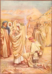 James Jacques Joseph Tissot. Public Domain Image from The Jewish Museum. | Tissot 26489-jesse-presents-his-sons-to-samuel-isai-presente-ses-sept-fils-a-samuel TRADART PD.webp |