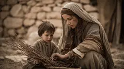 MidJourney dmcfeeters_A_widow_in_ancient_Israel_with_her_young_son_pick_up_ff74fa9a-36a7-494c-8ef5-28751b22e578.CC0.webp