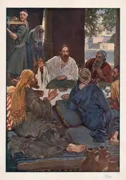 Nelson's Bible Wall-Pictures 1904-1910 | Jesus in the Pharisee’s House (1904) Thomas Nelson & Sons TRADART PD.jpg |