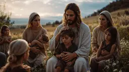 MidJourney dmcfeeters_Jesus_sits_by_Galilee_mothers_come_with_children._On_7aac6f32-54a0-4c1a-93fe-83ec6476928b.CC0.upsc.PurePhoto.webp