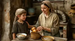 MidJourney dmcfeeters_Photograph_of_Hebrew_Woman_and_her_son_with_basket_o_d2fd450c-0f29-44ac-8706-98bee8828820.CC0.webp