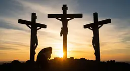 Gemini Jesus on the Cross Sunset with Sinner Praying 1.AIART.CC0.dmcfeeters.jpg