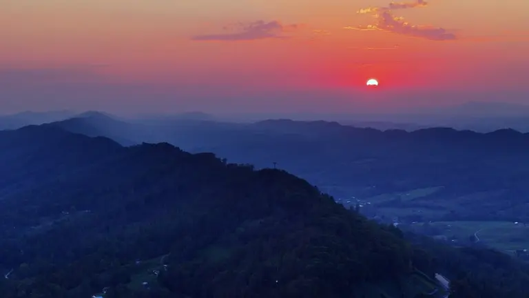 | Desc | Sunset over Powell Mountain Virginia with Blue Ridge Mountains, Loop Drone Video Dynamic Color. CC-BY Daniel McFeeters |